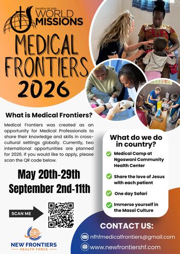 Join us on a medical mission to Kenya led by Dr. Morgan Dowd. This journey (May 26 - June 4, 2025 OR September 2nd-11th ) brings together medical professionals to serve communities in need through our Medical Frontier Camp in Ngoswani. In addition to hands-on medical outreach, participants will experience local culture, attend a church service, and enjoy a one-day safari. The trip is limited to 10 medical professionals. For application use the provided buttons.